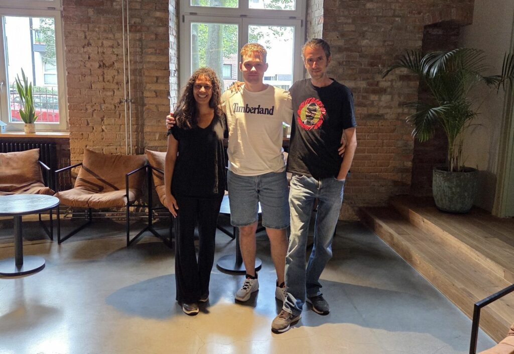 Bruno Forzani i Hélène Cattet – reżyserzy “Błysku Diamentu Śmierci” (dystr. Velvet Spoon) i ja po dopiero co zakończonym wywiadzie
